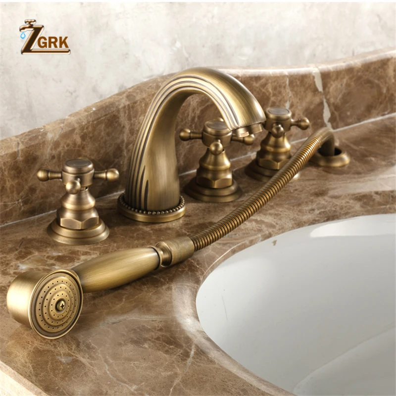ZGRK латунный классический смеситель для ванны, смеситель с ручным душевым креплением, 5 отверстий