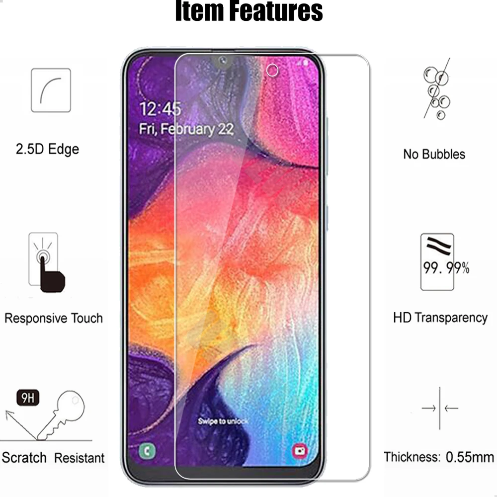Compatible Phone Model 1For Samsung Galaxy A50 Tempered Glass Screen Protectors Protective Guard Film HD Clear