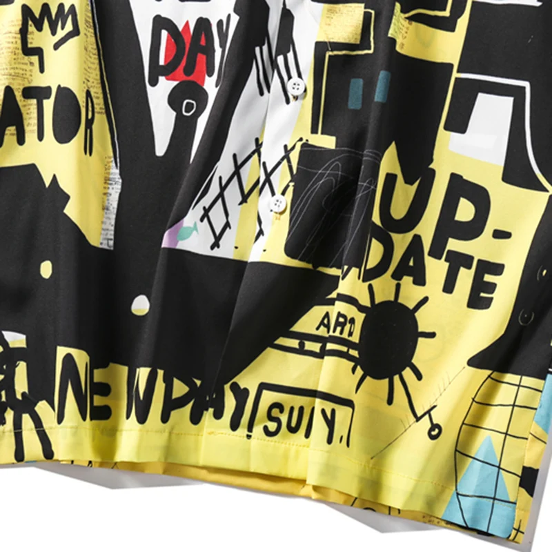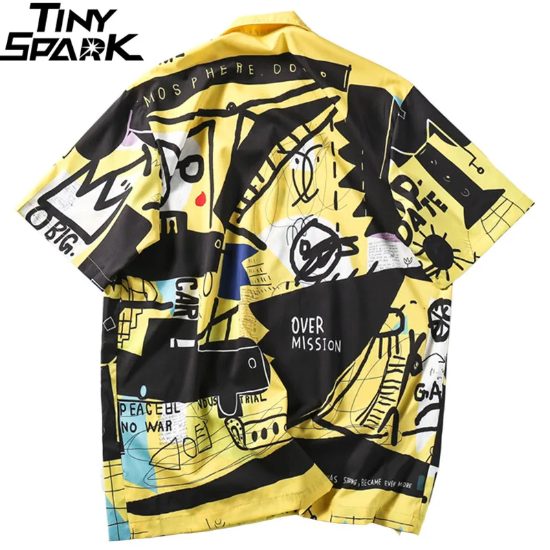 2021 гавайская рубашка граффити мужские хип-хоп рубашки уличная Harajuku пляжная рубашка Летняя Повседневная рубашка Топы с коротким рукавом хипстер