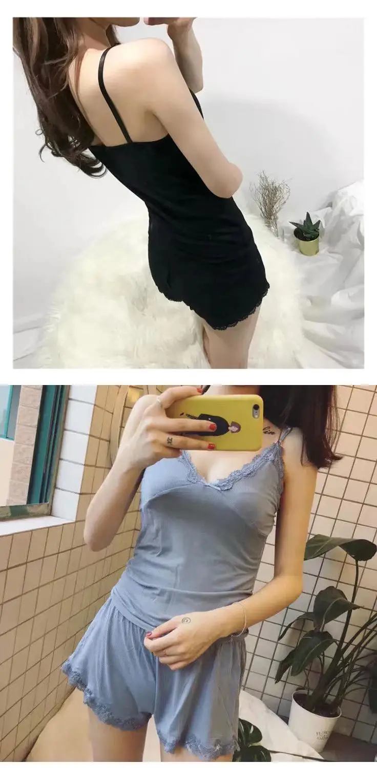 Пижамный комплект Daeyard, из двух предметов, хлопковый, кружевной топ и шорты, летняя Пижама, эластичная Пижама, ночная рубашка, домашняя одежда