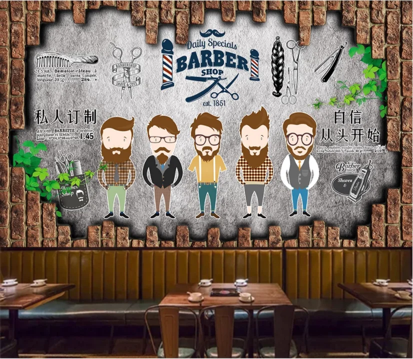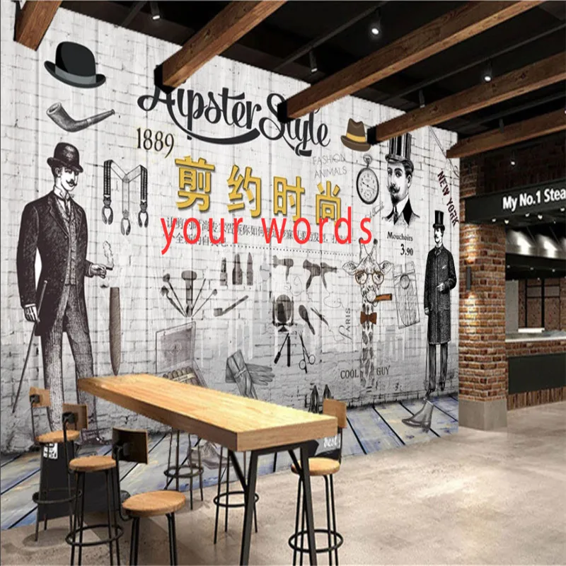 Ретро Ностальгия европейский и американский тренд человек Парикмахерская настенная бумага 3D Парикмахерская промышленный Декор настенная бумага 3D фрескиЕсли вы хотите добавить свое имя магазина на картинке, пожалуйста, свяжитесь с нами.Пожалуйста, оставьте материал по вашему выбору в сообщении заказа, в противном случае он будет отправлен случайным образом.
