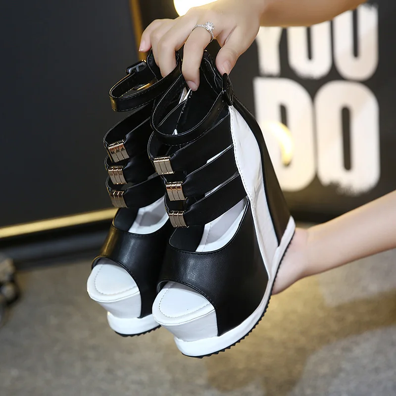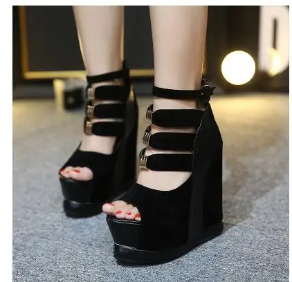 Женские босоножки на танкетке 15 см, босоножки на платформе и высоком каблуке с регулируемой пряжкой, лето 2022