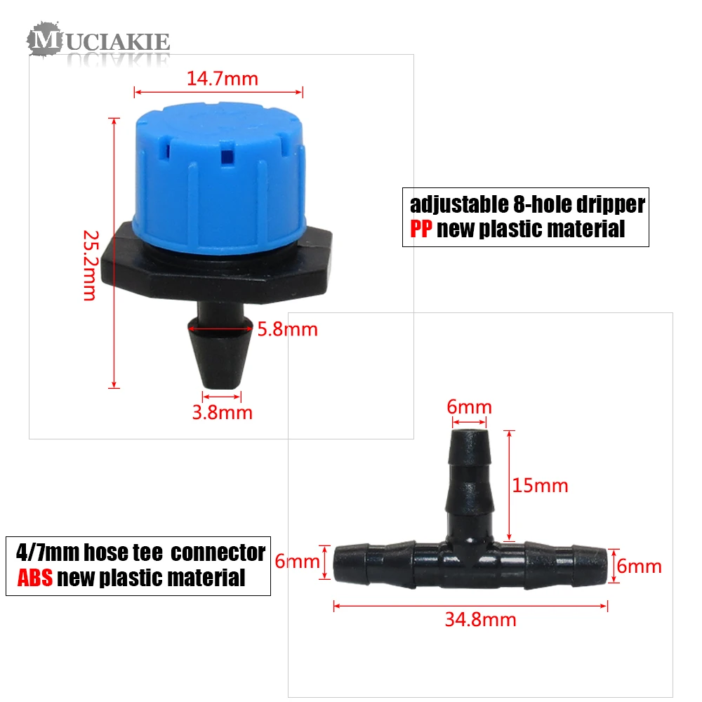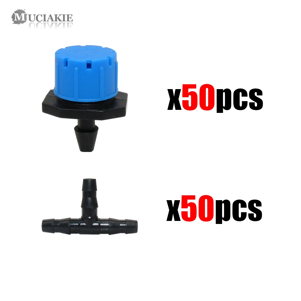 50 шт., Синий Регулируемый капельный излучатель с 8 отверстиями + 50 шт., коннектор из АБС-пластика для шланга 47 мм, фитинги для полива сада