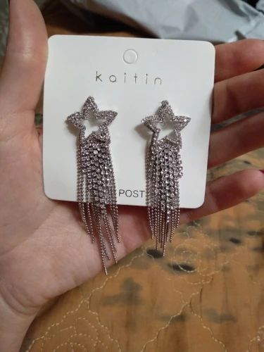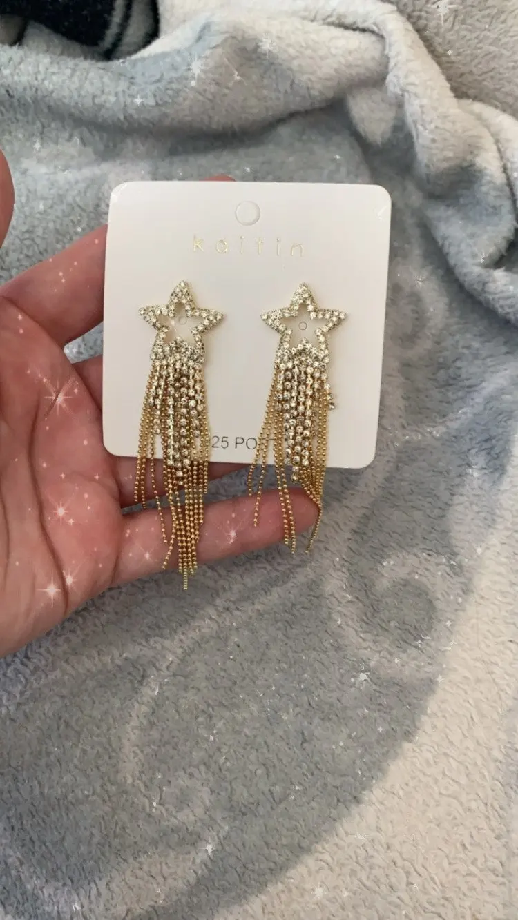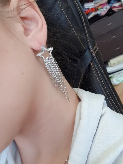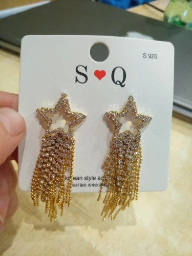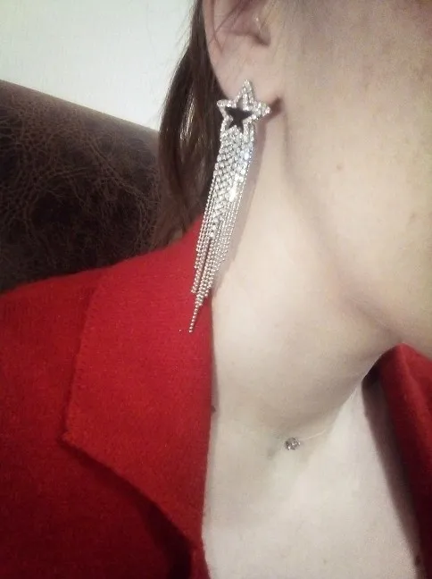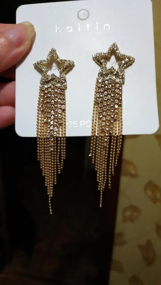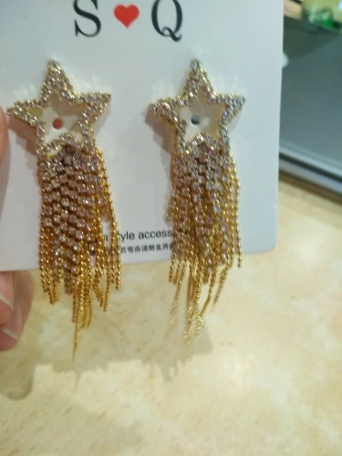 FYUAN мода длинные кисточки Кристаллы серьги для женщин 2019 бижутерия Роскошные блестящие золотые цвета серьги-подвески в форме звезды Ювелирные изделия Подарки