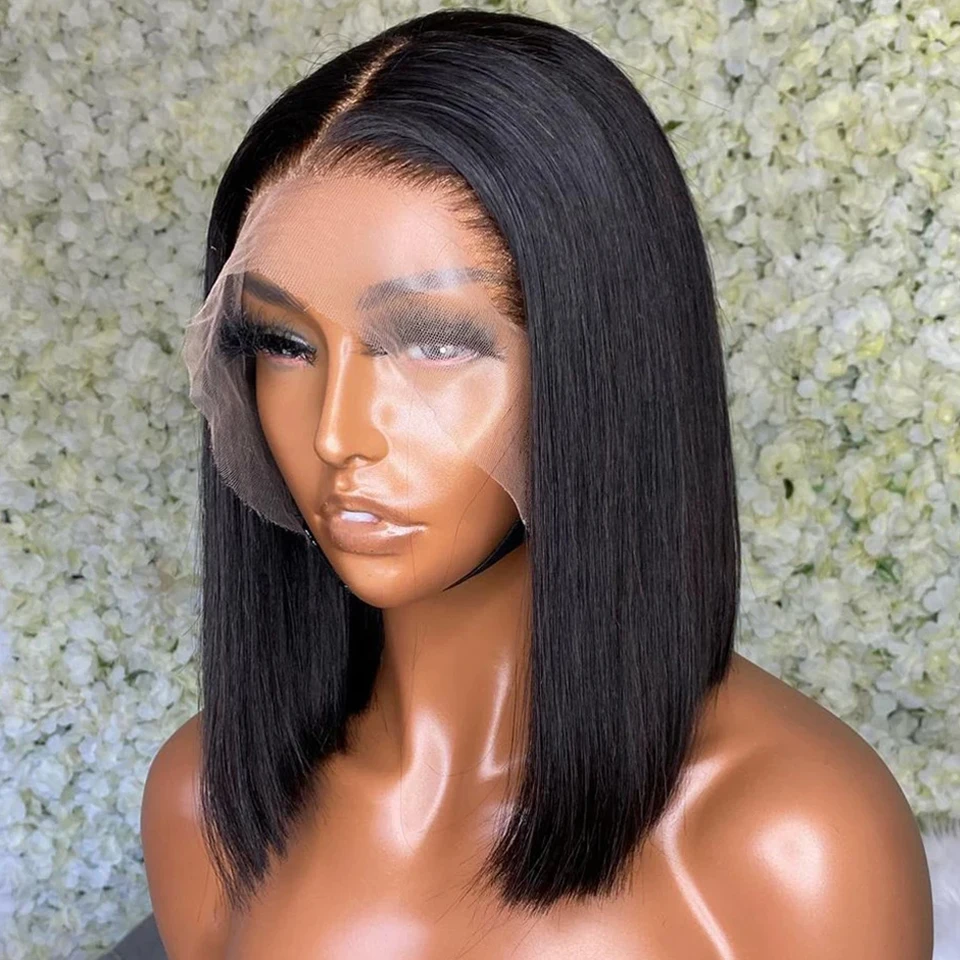 Парик из человеческих волос с короткой кружевной передней частью 13x4, плотность 180%, парик Боб, естественный цвет, бразильские волосы Remy, парик на сетке для черных женщин