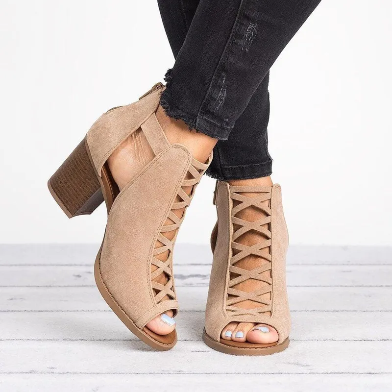 SLHJC, летние короткие ботинки на толстом блочном каблуке, с открытым носком, сандалии Med, размера плюс, уютные туфли-лодочки, сандалии, женская обувь