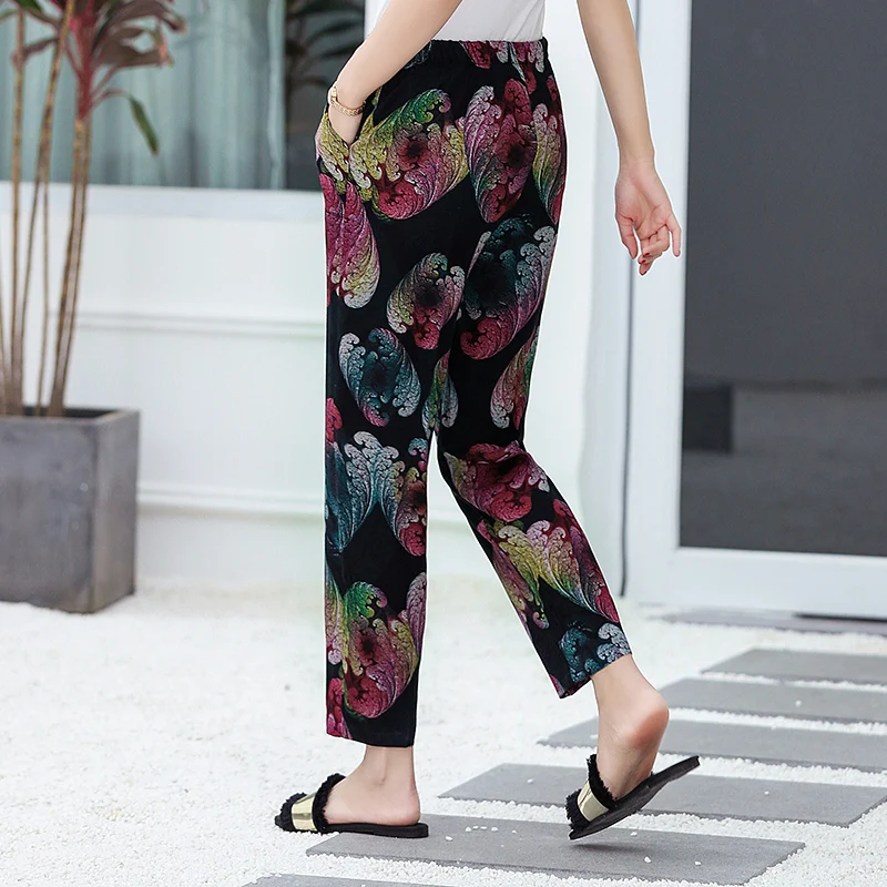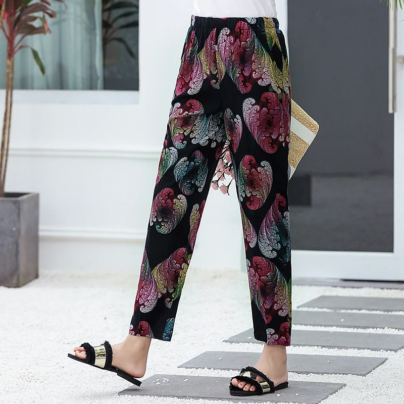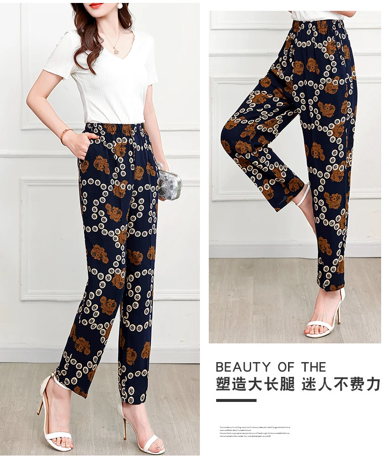 Женские брюки-карандаш, 22 цвета, летние повседневные брюки с высокой талией, с принтом, эластичная талия, для женщин среднего возраста, 2021