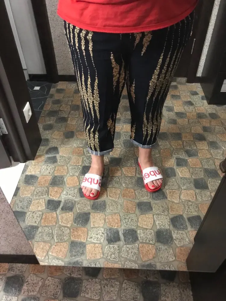 Штаны понравились. Ткань отличная. На обхват бёдер 116 см взяла 5XL. Вот в самый раз. Тютелька в тютельку. На рост 164 см. Низ на одной брючине кривоват. Пришлось подвернуть. Перед и зад покрой одинаков. Поэтому спереди штаны выше пупка на 7 см поднимаются. А сзади как раз. Ну все равно понравились штаны.