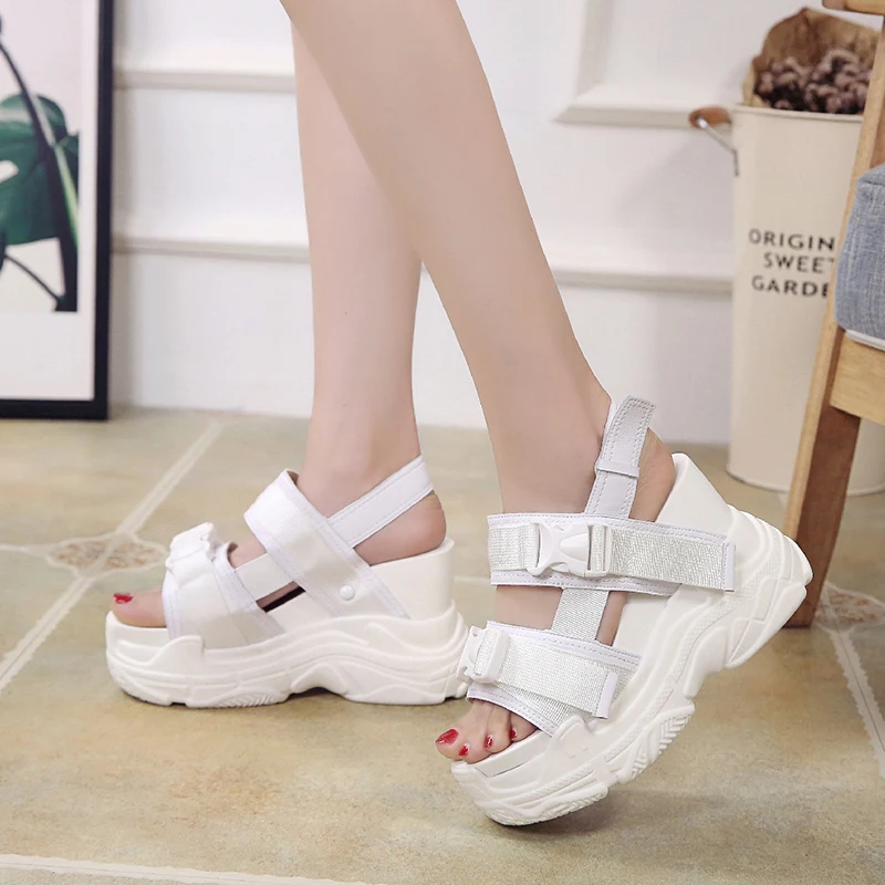 RASMEUPженские спортивные сандалии-гладиаторы на платформе 12 см с высоким каблуком, модные летние кроссовки, криперы, удобная обувь