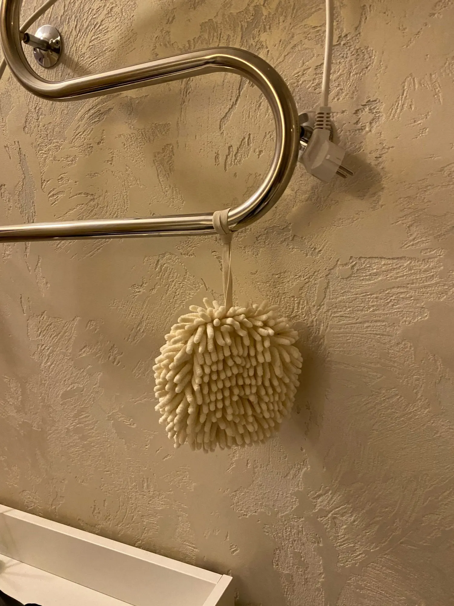 Не обычный форм-фактор полотенца, достаточно удобно вытирать руки.