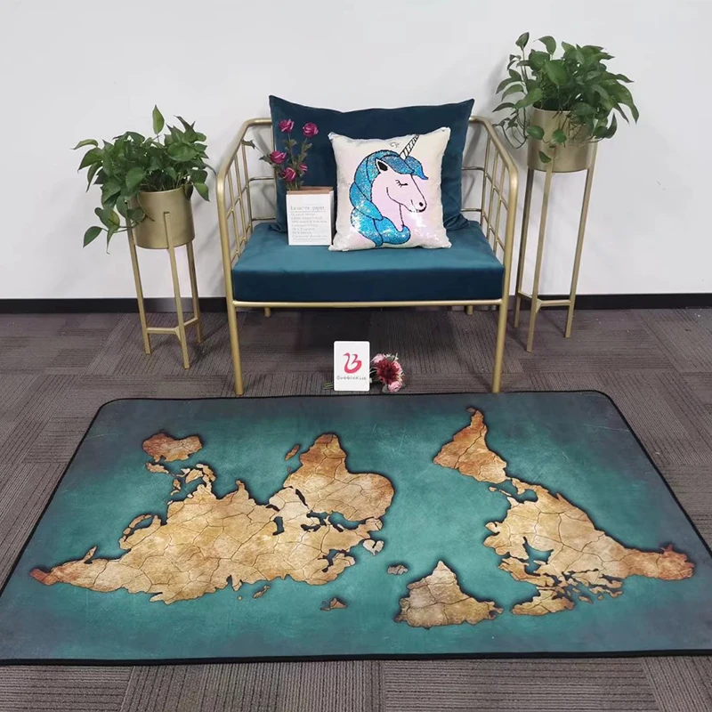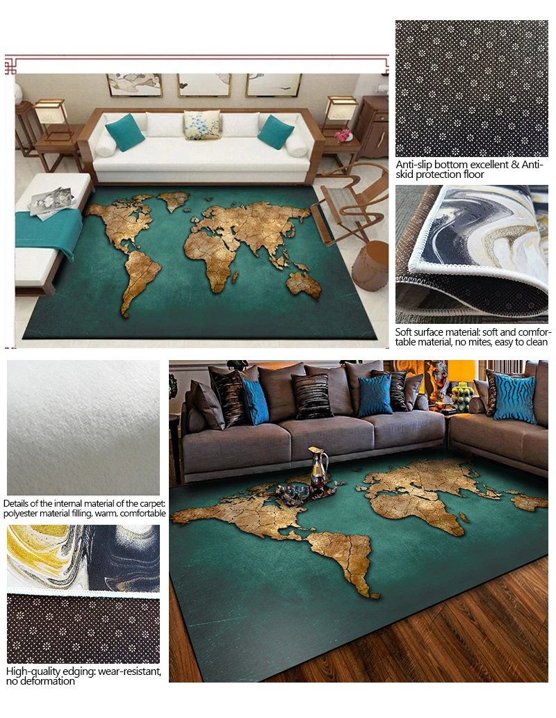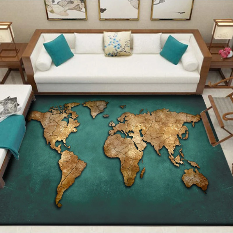 Мягкий ковер воздушного поцелуя для гостиной, американский Ретро зеленый золотой коврик с изображением старой карты мира, напольный коврик для спальни, украшение для дома