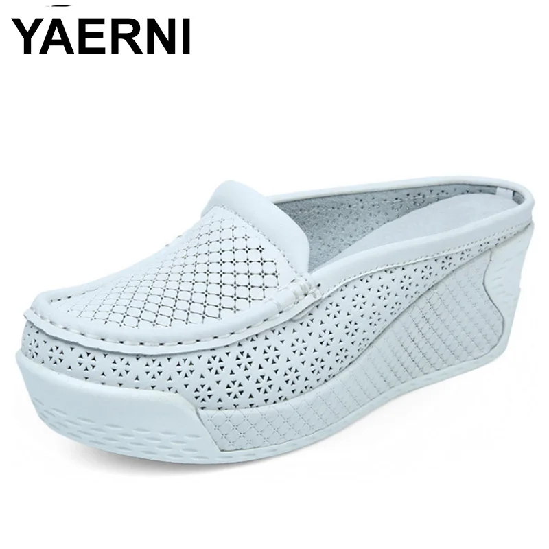 Женские туфли-лодочки YAERNI, летние, повседневные, с ремешком на пятке, слипоны, сетчатые, на платформе, E883