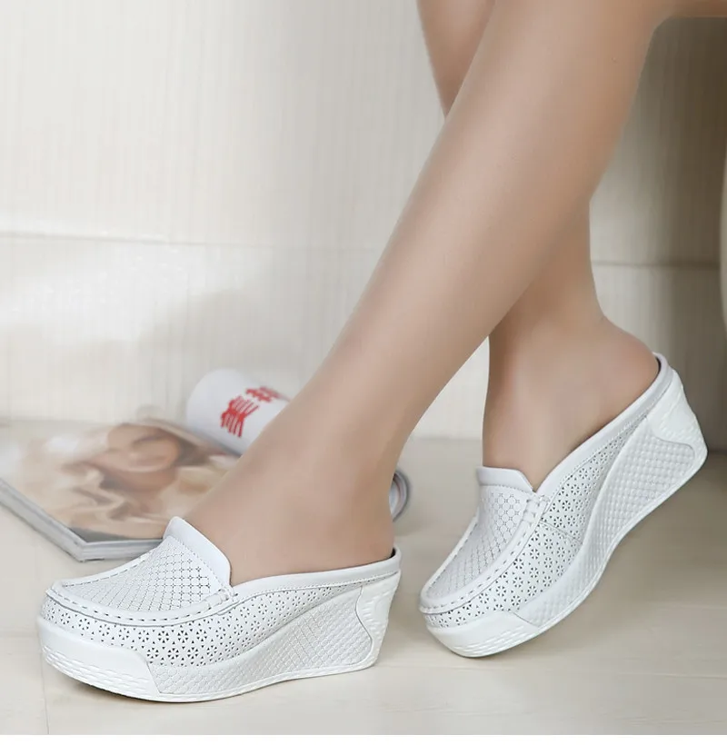 Хорошие кожаные шлёпки, с перфорацией. Мягкие, удобные. К сожалению не угадала с размером. Имея опыт покупки обуви на АлиЭкспресс, заказала на размер больше, а они оказались не маломерки. В результате на размер велики. Надо было верить размерной сетке. В остальном всё прекрасно. Быстрая доставка, 14 дней. В подарок резинка для волос. Спасибо. С продавцом не общалась, не было необходимости.