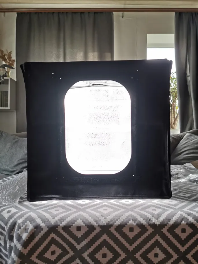 Отличный лайтбокс. Собипается просто. Только фоны не очень, буду картон использовать. Доезал в Украину ща месяц. Доставка Мист Экспресс. Писала продавцу по поводу типа вилки, ответил, вложил правильную. Ещё и подарок, штатив с гибкими ножками.
