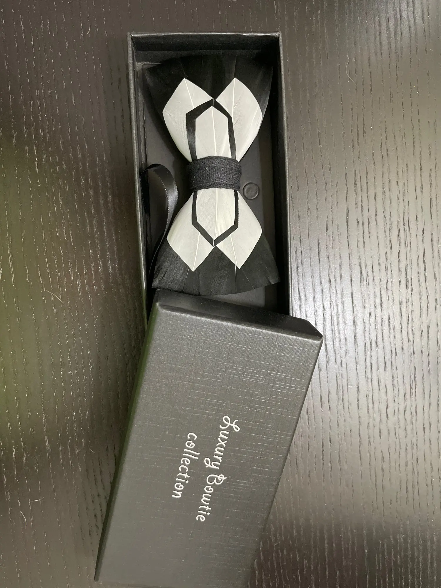 GUSLESON Новинка Мужская кожаная брошь ручной работы с перьями для галстука-бабочки предварительно завязанная Бабочка для свадебной вечеринки в подарочной коробке