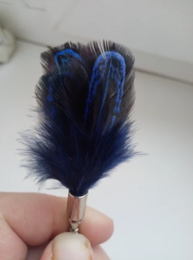 Заказала 11.11 пришла примерно 25.11 упакована в пакет и обмотана пупыркой. Не настолько яркая как на фото продавца, но все равно красивая. Держится крепко на одежде пока не потерялась. Перья целые не мятые. Смотрится не обычно. С продавцом не общалась, отправка быстрая.
