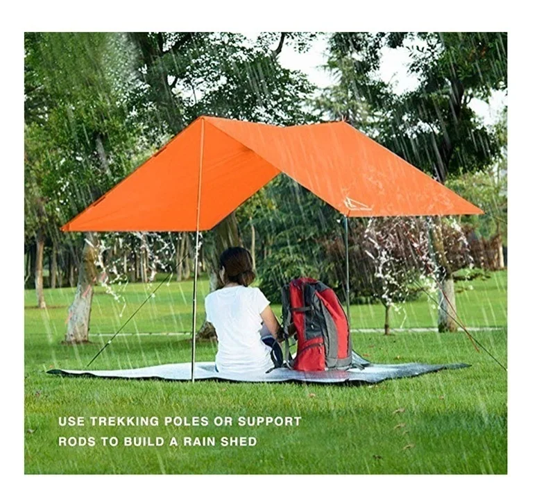 Он используется в качестве пончо от дождя, в основном, он также используется для брезента над гамаком, но размер может не полностью растягиваться над всем гамаком, восстановил настоящий гамак брезент. Вы можете увидеть размер при выборе.
