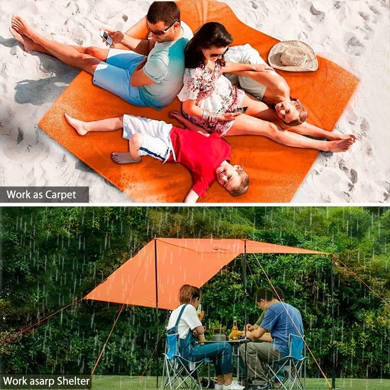 -Он имеет 4 люверса в уголке краев, превращается в тент для укрытия с завязками и поддержкой sods.