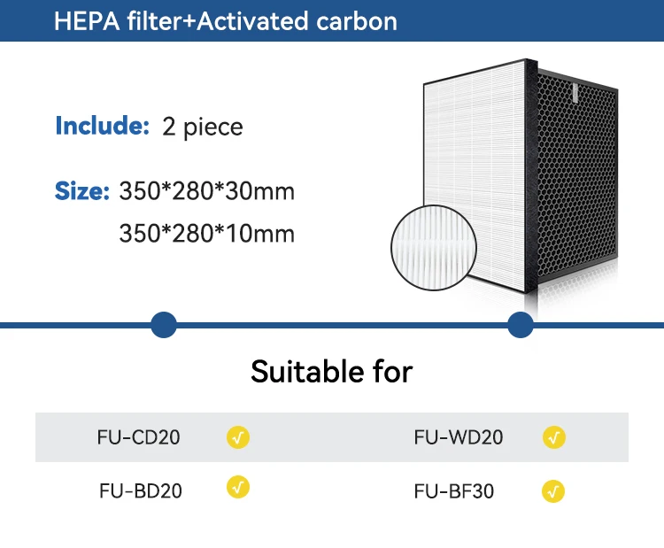 H12 Hepa и Активизированный карбоновый фильтр для Sharp FP-E50E-W FP-E50E FZ-E50HFE FU-CD20 FU-WD20 FU-BD20 FU-BF30