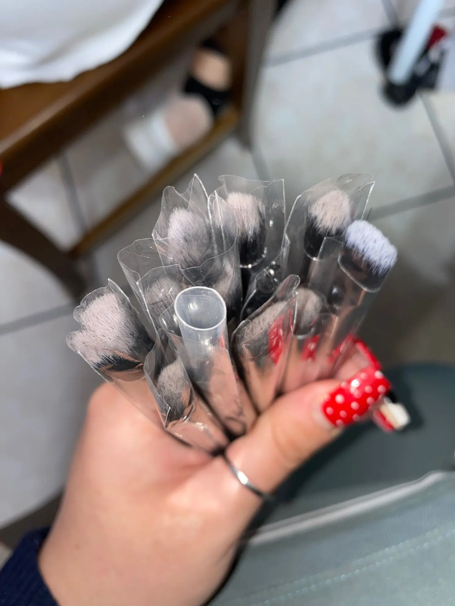 Я купил те же кисти у другого продавца, и они были более пышными, чем эти. Но в целом мне они нравятся.
