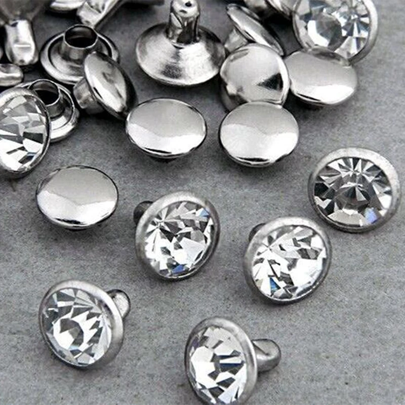 100 комплектов 6 мм и 8 мм прозрачные хрустальные заклепки из горного хрусталя серебряные металлические основа шпильки украшения фурнитура для одежды сумка кожевенное ремесло