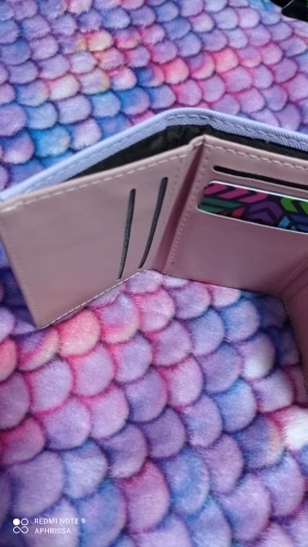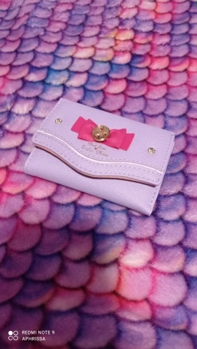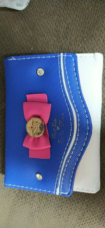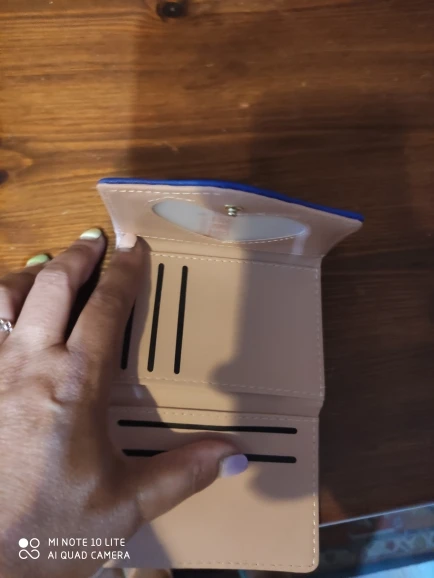 Кошелек выглядит так же, как на картинке, очень красивый сиреневый оттенок, а отделка хорошо сделана по цене, которая также имеет много слотов для разных карт и место для фотографии... Детали очень хорошо сделаны, особенно лунный лун, который находится в центре застежки, хотя это не убеждает меня на всех золотых буквах, которые есть Внизу лука, кажется, будет стерта скоро, заказ занял 15 дней, чтобы прибыть в Мексику с очень быстрой доставкой в сделке с продавцом, это хорошо