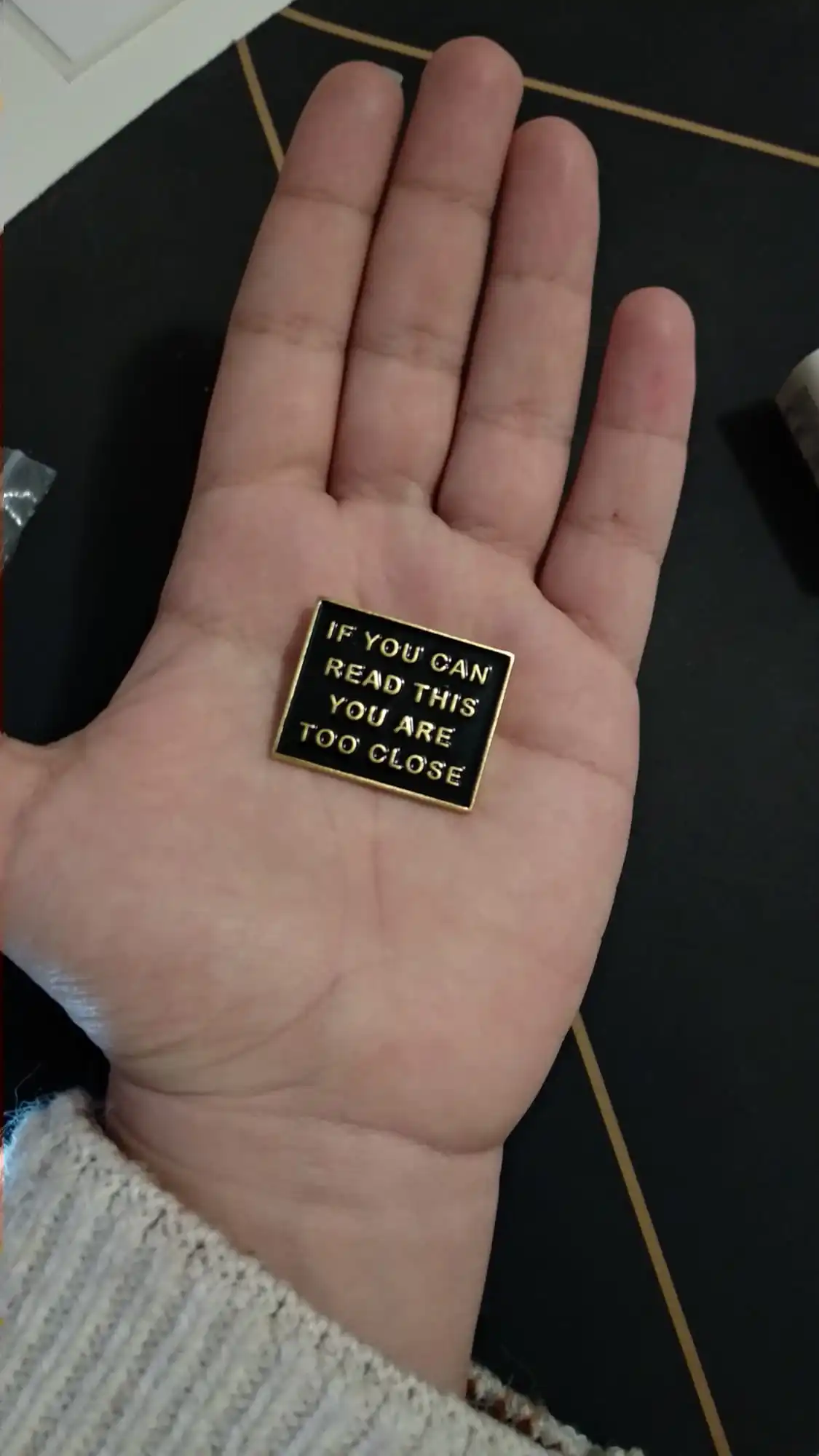 Трохи менше ніж уявляла. Доставка доволі швидка, у порівнянні з іншими посилками. Значок гарний.