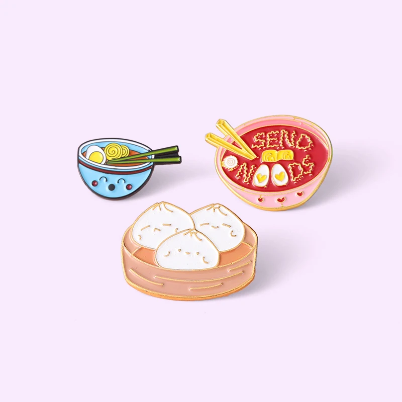 Мультфильм Мини Ramen японская лапша эмаль контактный Милая миска палочки для еды Броши джинсовая рубашка Воротник значок булавки на лацны Ювелирные изделия Подарки