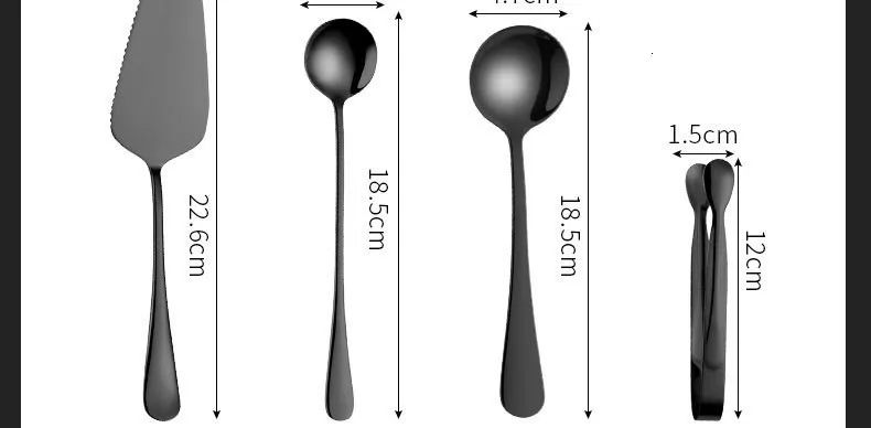 Стальной черный набор столовых приборов, вилки для рыбы, ножи, суповые ложки, палочки для масла, десертная ложка, вилка для торта, чайная ложка, набор столовой посуды