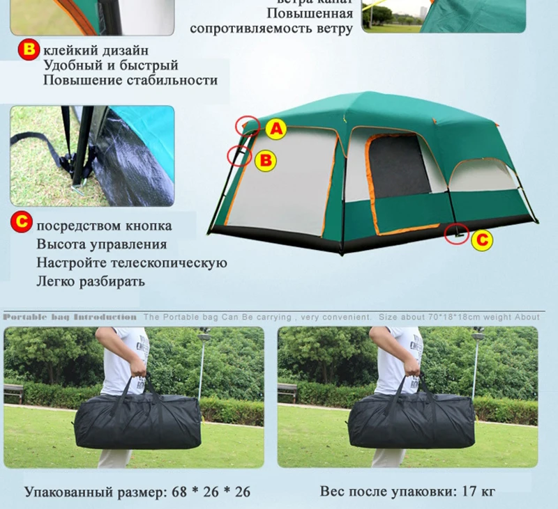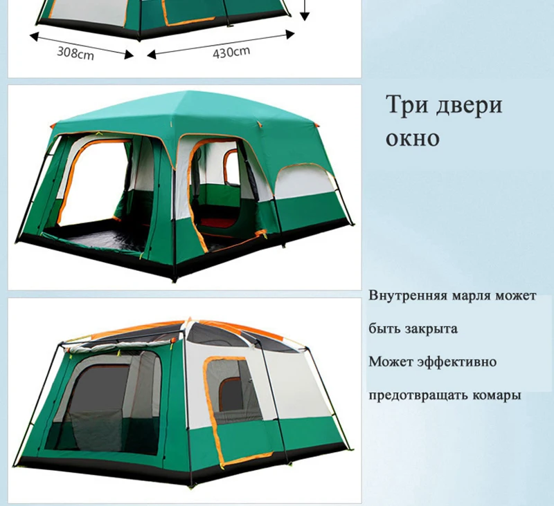 Палатка для 8-12 человек на открытом воздухе, новая, большая, водонепроницаемая, палатка для спальни