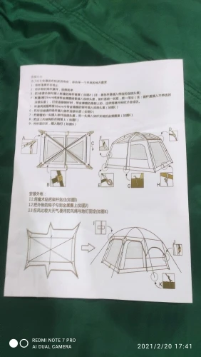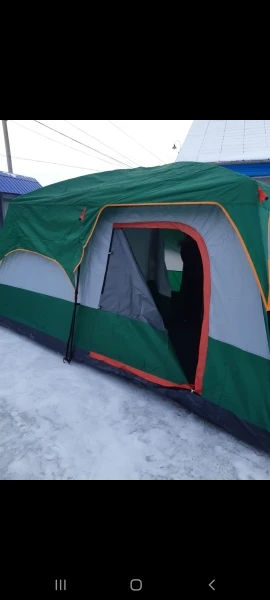 Можно много писать об этой палатке, да и хочется поделиться своими ХОРОШИМИ впечатлениями. Прежде чем заказать много читал отзывов и смотрел обзоры не только за эту оплату. Выбирал из пяти палаток. Свой выбор остановил на этой так как цена и качество изделия считаю лучшими из других. Заказал 15.01.2021г., получил 31.01.2021. С учётом что живу на севере ЯМАЛ и температура держалась около -50... доставка быстрая что очень порадовало. Отправка продавцом также была быстрой. Спасибо. Палатку проверил на укамплектованность и по возможности собрал в квартире. Всё соответствует описанию. Единственное думаю колышки придётся добавить подлиннее, так как у нас везде песок("родные" для песка коротковаты). Теперь надо заказывать два надувных матраса 150*200 и пять спальных мешков т.к. семья состоит из пяти человек. Палатка превзошла все мои ожидания. Как кто то сказал в коментах (эта палатка равносильно что квартира на природе). Теперь + к этой палатке надо купить палатку душ-туалет. И ехатьв отпуск