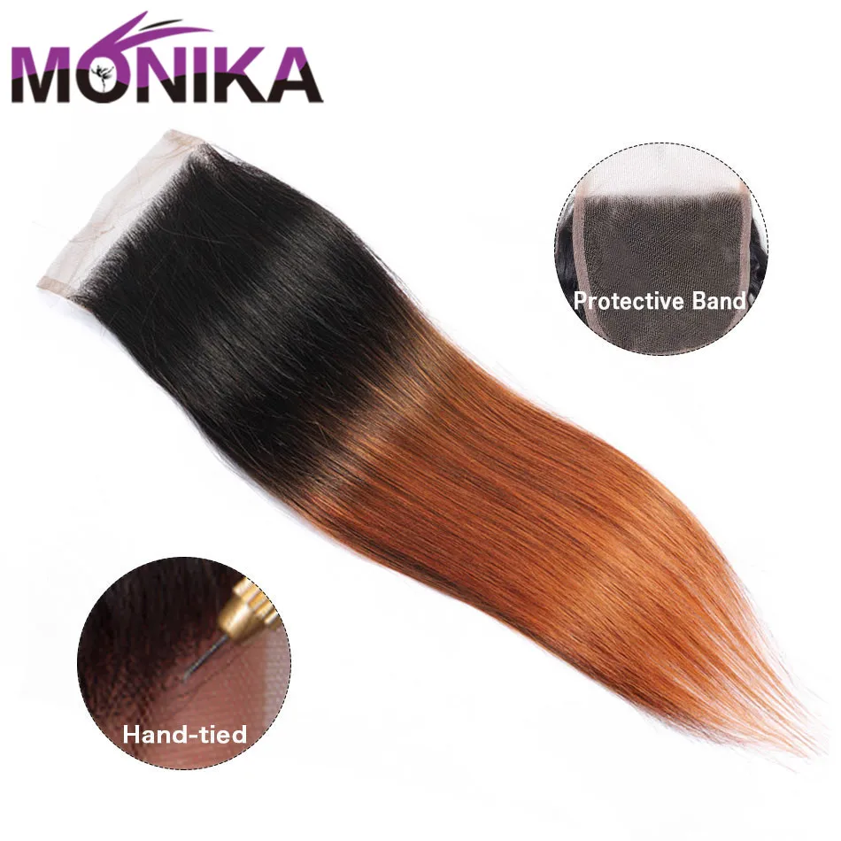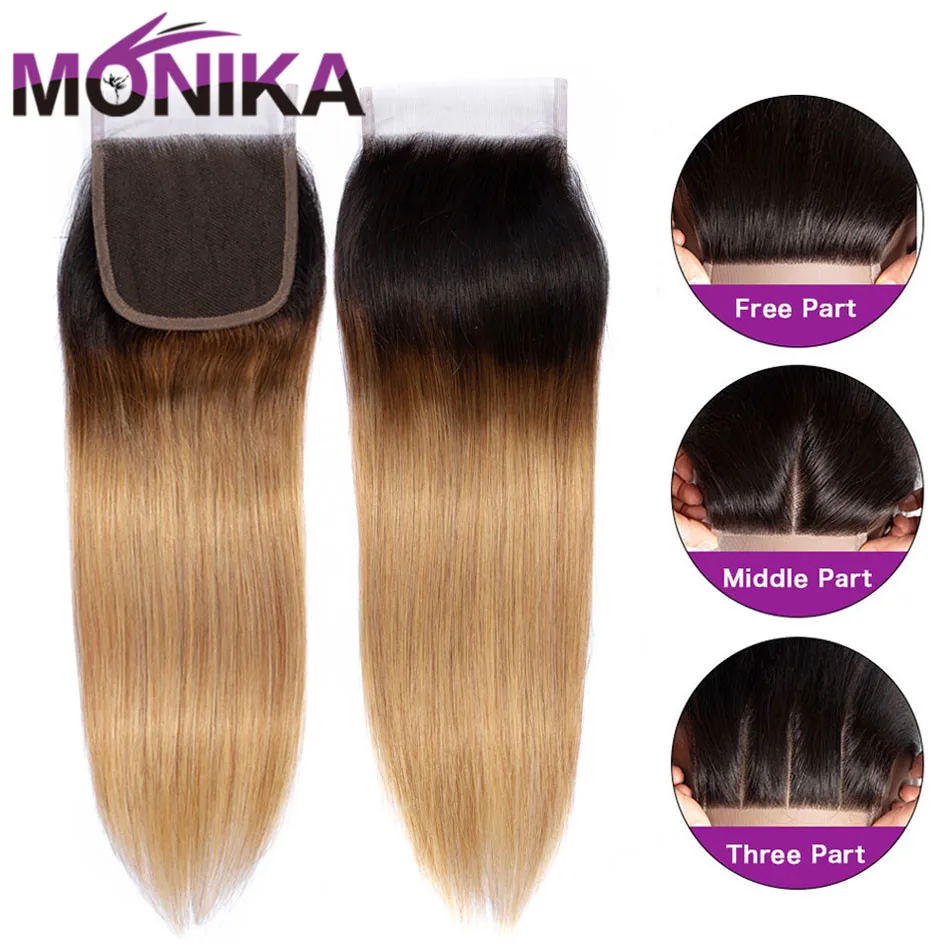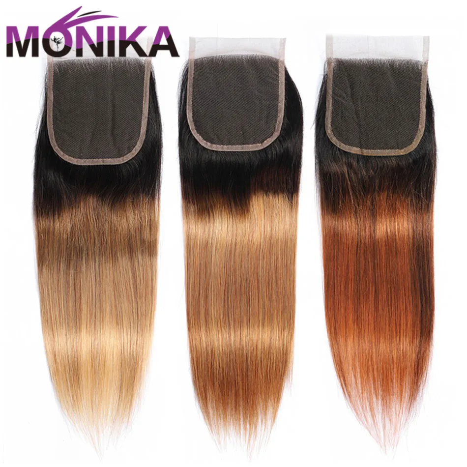 Monika закрытие волос Ombre Цветные T1B #4 #27 #30 Кружева Закрытие 4X4 бразильские прямые волосы Закрытие человеческих волос не Реми