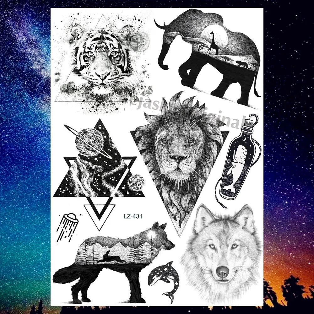Временные татуировки REJASKI Galaxy Triangle Lion для женщин и мужчин, фальшивые татуировки на запястье с изображением волка леса звезды
