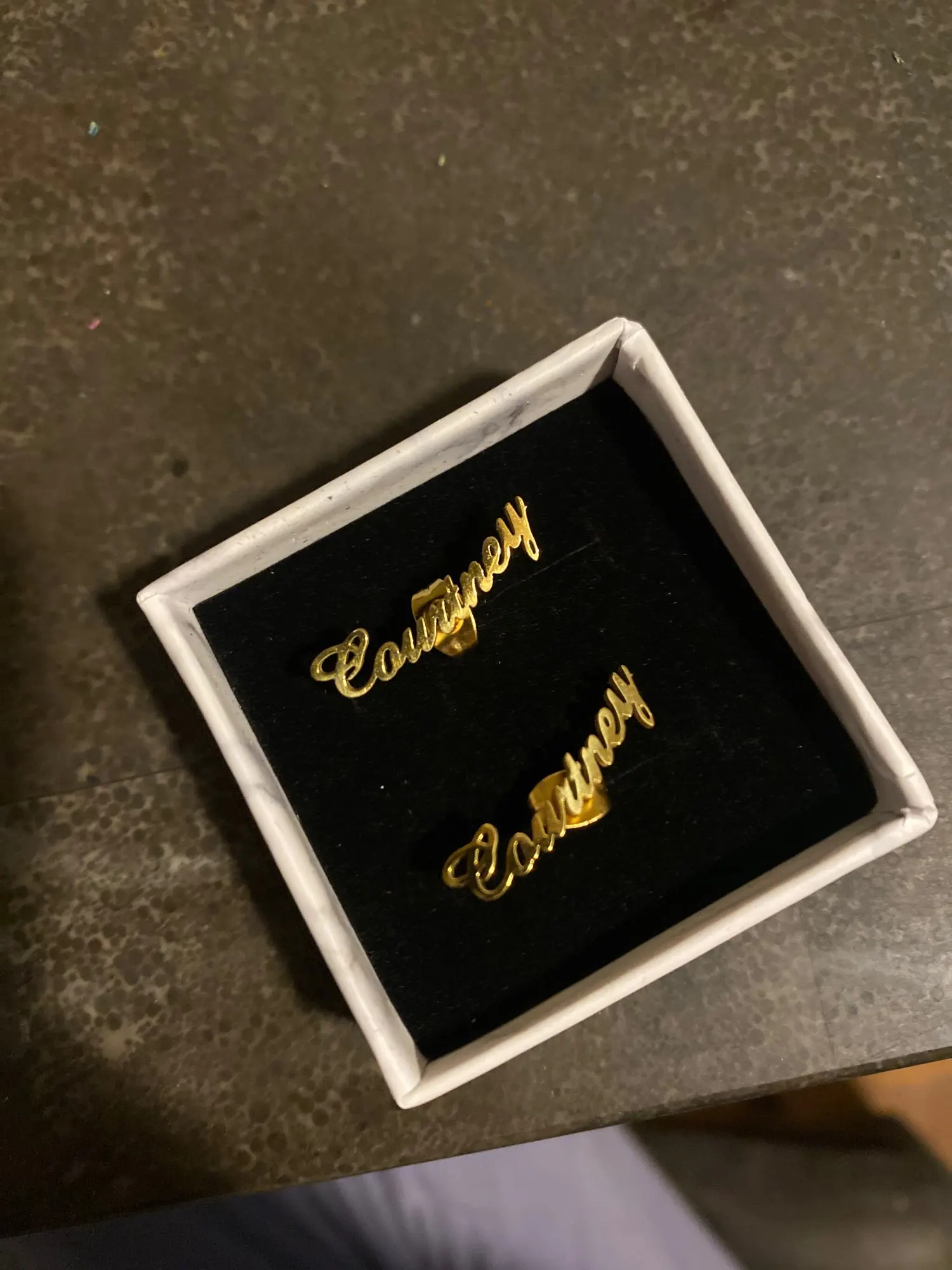 Серьги отличные, хорошего качества и прочные. Свет. У него только один недостаток, и это то же самое, что и у обоих, так что имя будет читано только справа в одном ухе. Я буду использовать оба для того же, если он потеряется .... Доставка заняла некоторое время, потому что она совпала с китайскими Новогодними праздниками, но процесс был быстрым. Они приходят в маленькой коробке. Хорошее общение с продавцом
