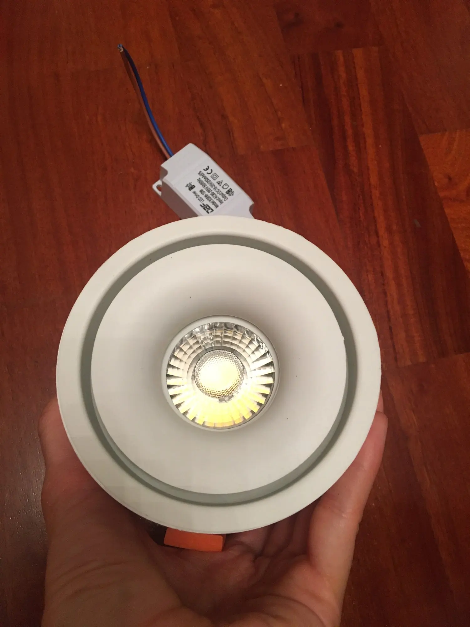 Покрас не очень качественный, есть мелкие дефекты практически на каждом из 4 светильников. Пластиковая кайма вокруг лампы имеет зазубрины на краю - огрехи отлива пластика, малозаметно. Но все это не видно будет на потолке, поэтому в целом доволен за эту цену