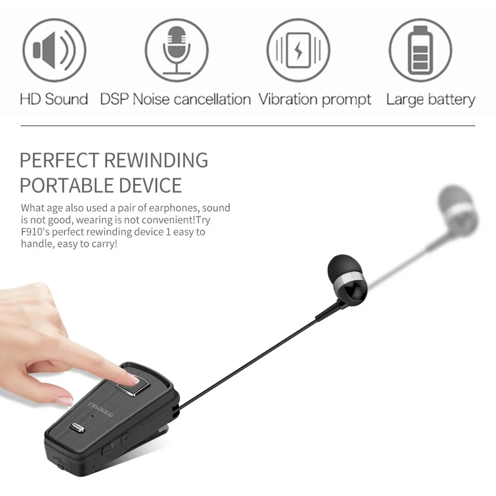 Беспроводные Bluetooth-наушники Fineblue F980 с зажимом, спортивные стереонаушники, деловая гарнитура с микрофоном, звонки, напоминание о вибрации