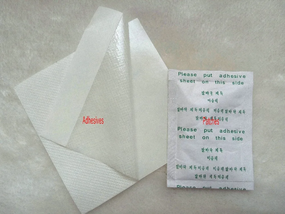 3. Поместите подушечку для ног на клейкую ленту там, где отмечено, чтобы "положить клейкий лист с этой стороны" и разместите на подошвах ваших ног или нужной области другой части тела.