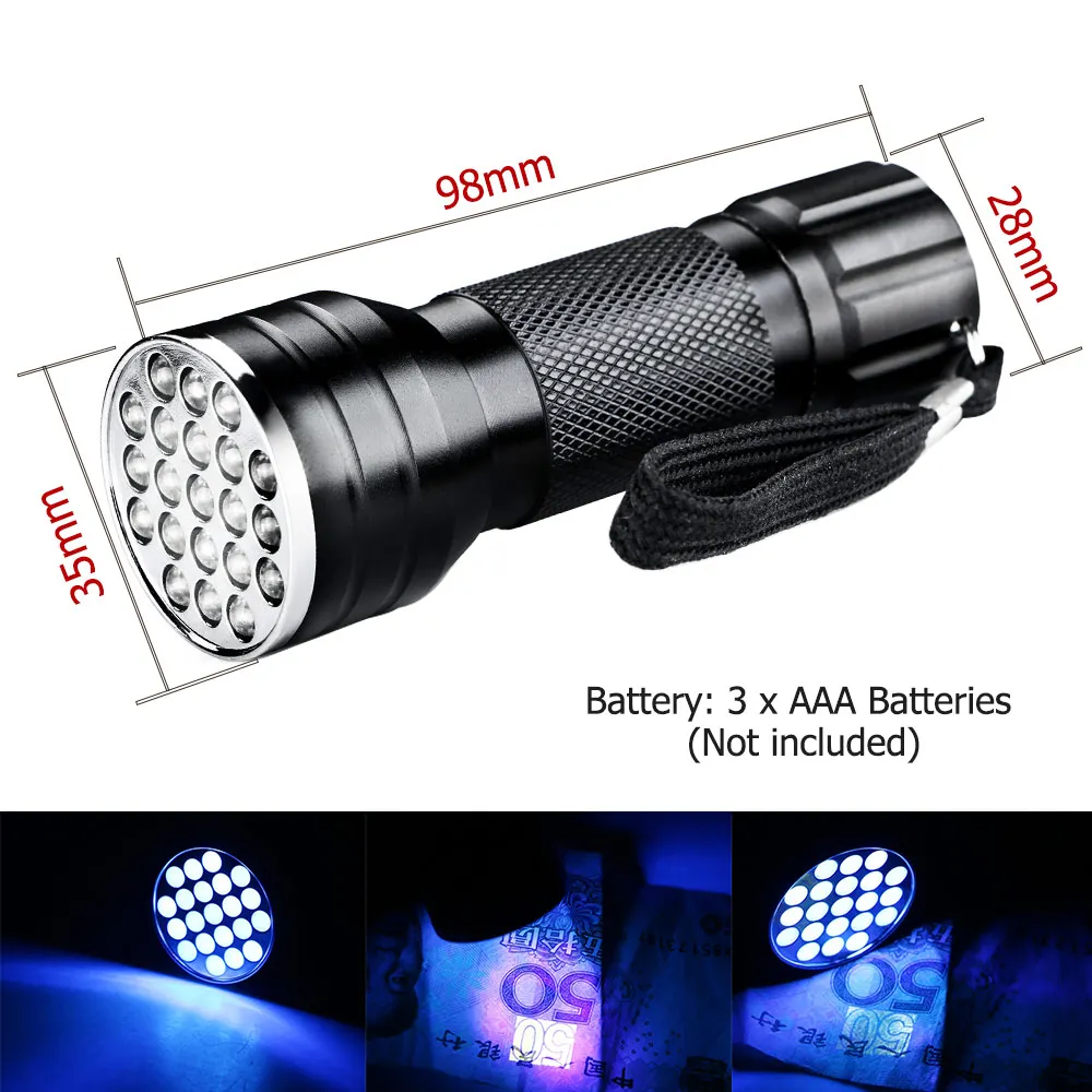 УФ-вспышка светильник фонарь 9 светодиодный 21 светодиодный зум-фокус ультрафиолетовый светильник УФ 395-400нм светодиодный фонарь светильник лампа для обнаружения маркера