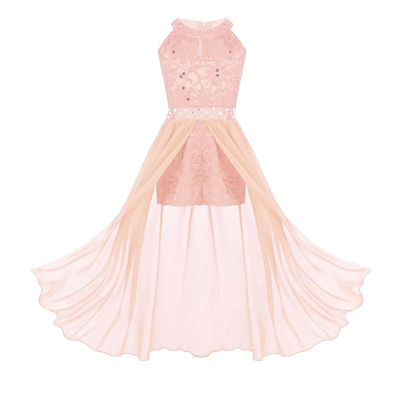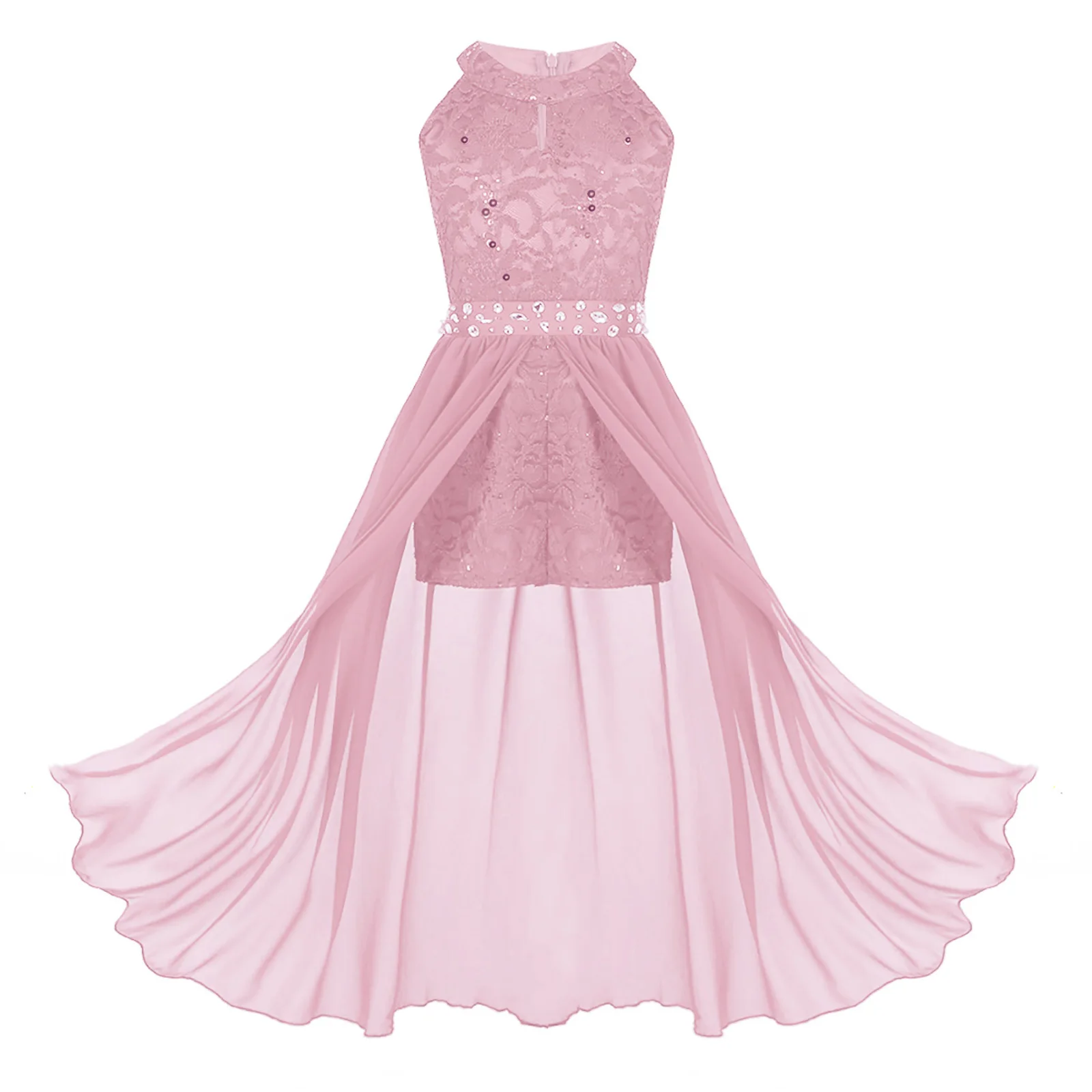 Детское кружевное платье без рукавов, с цветочным принтом, для девочек, для свадьбы, конкурса, школьных танцев, дня рождения