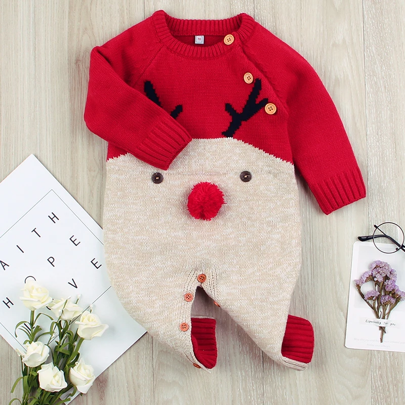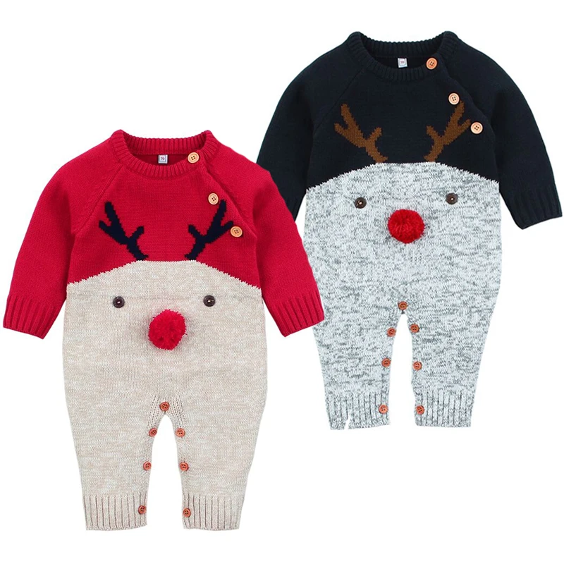 Рождественский комбинезон с длинными рукавами для новорожденных мальчиков и девочек 0-3 лет, вязаный зимний комбинезон с мультяшным животным, Детский комбинезон с оленем