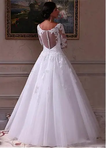 Прозрачное цветочное кружевное свадебное платье с рукавом 34