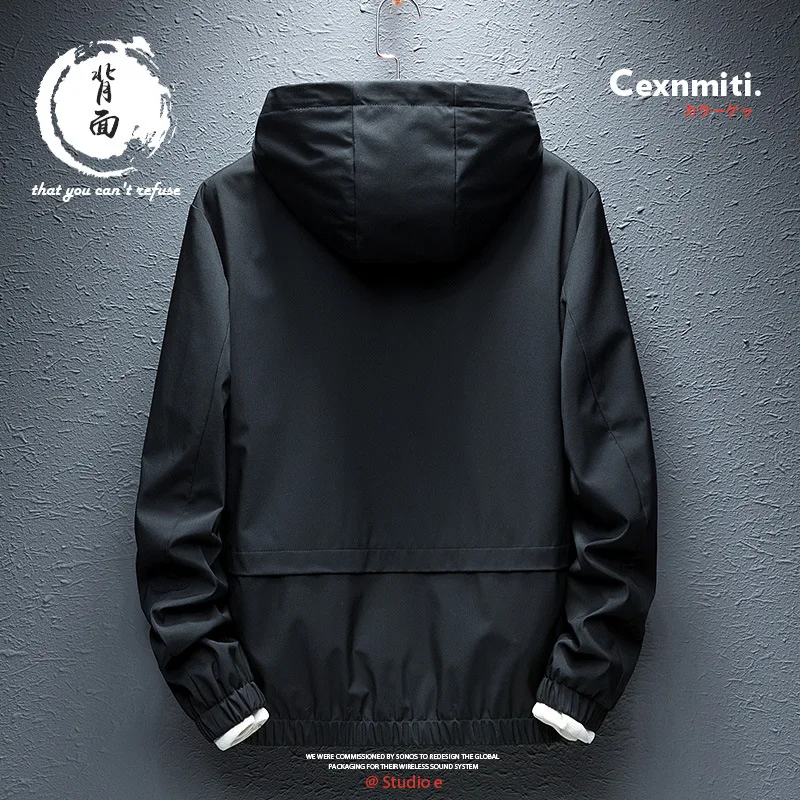 Осенняя куртка, водонепроницаемая, весна, мужская, Молодежная, в Корейском стиле, приталенная, с капюшоном, модная, красная, повседневная, черная, ветровка, мужская