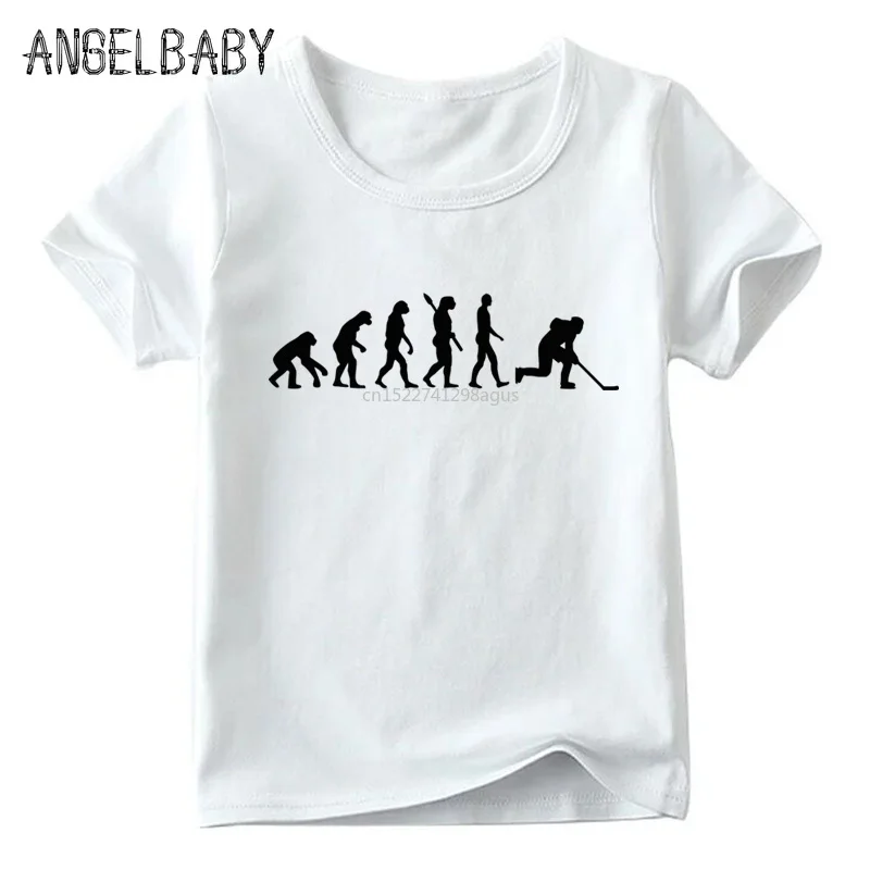 Детская забавная Футболка с принтом хоккеера Evolution Of Ice, летние белые топы с коротким рукавом для мальчиков и девочек, Повседневная футболка для детей, ooo795