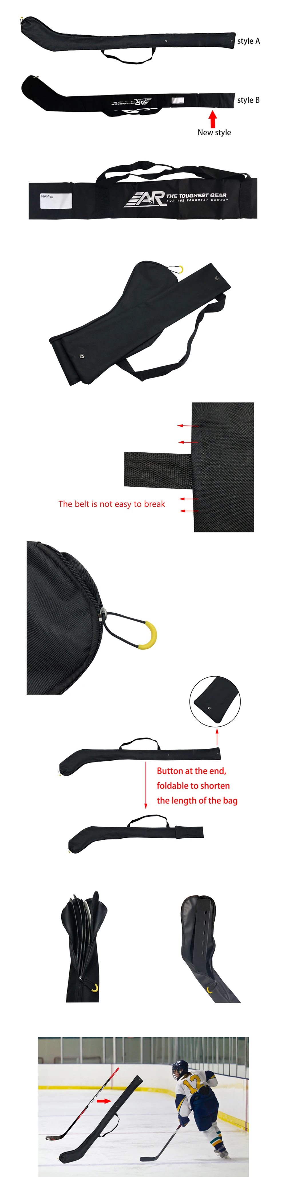 Сумка для хоккея портативная на одно плечо высокое качество черная светильник аемая для хоккея Спортивная Регулируемая хоккейная экипировка