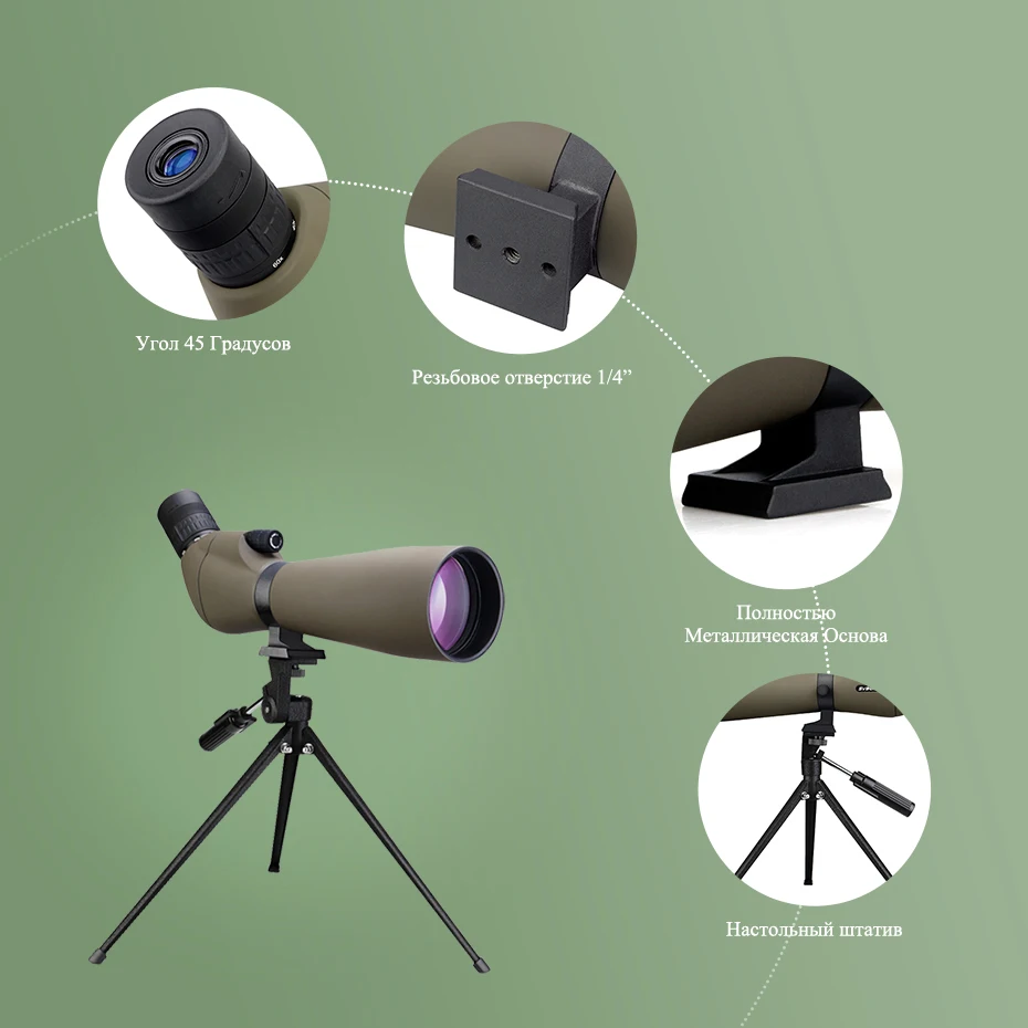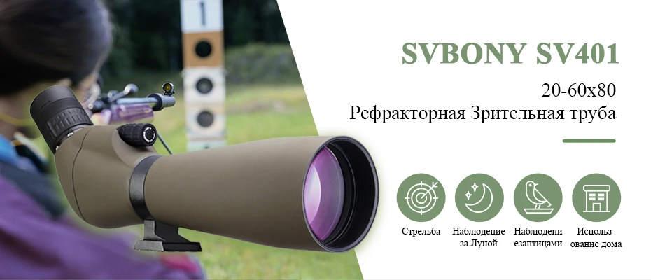 Svbony телескоп SV401 20-60x80 рефрактор Зрительная труба BK7 серебристый + MC Prism IPX7 водонепроницаемый с штативом оборудование для кемпинга Лучший партнер для наблюдениястрельбы из лука на 50-100 метров