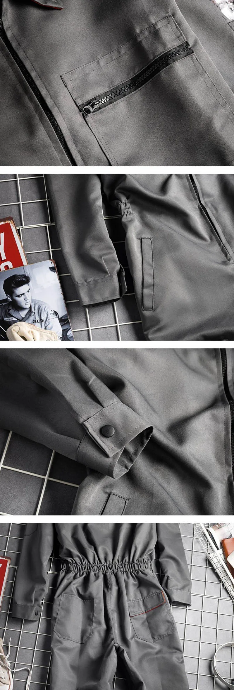 Винтажный Мужской комбинезон-карго Harajuka, с длинным рукавом, на молнии, с карманами, мужской комбинезон, модный свободный, Повседневный, размера плюс, S-4XL