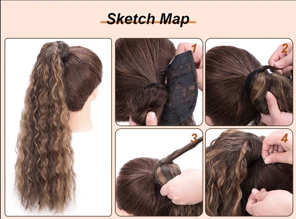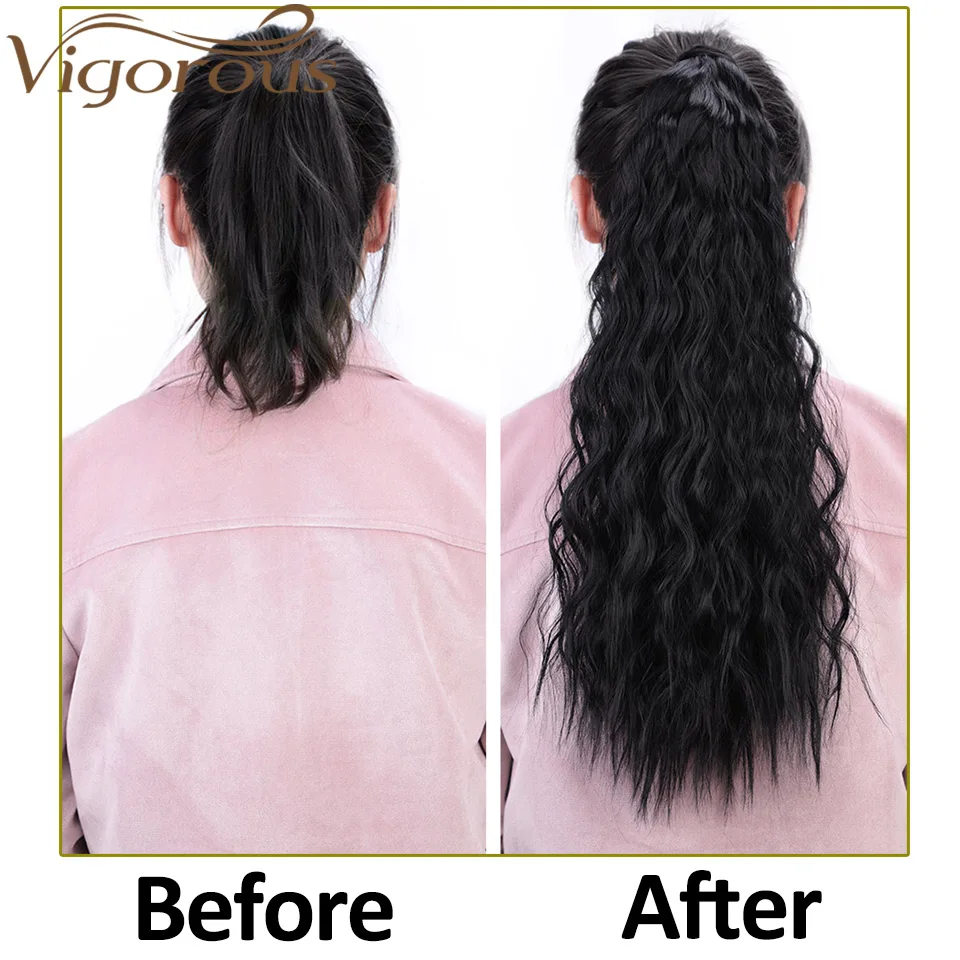 Энергичный кукурузный волнистый Длинный Конский хвост, синтетический шиньон, накидка на зажим, удлинитель волос, коричневый, конский хвост, светлые волосы для лица