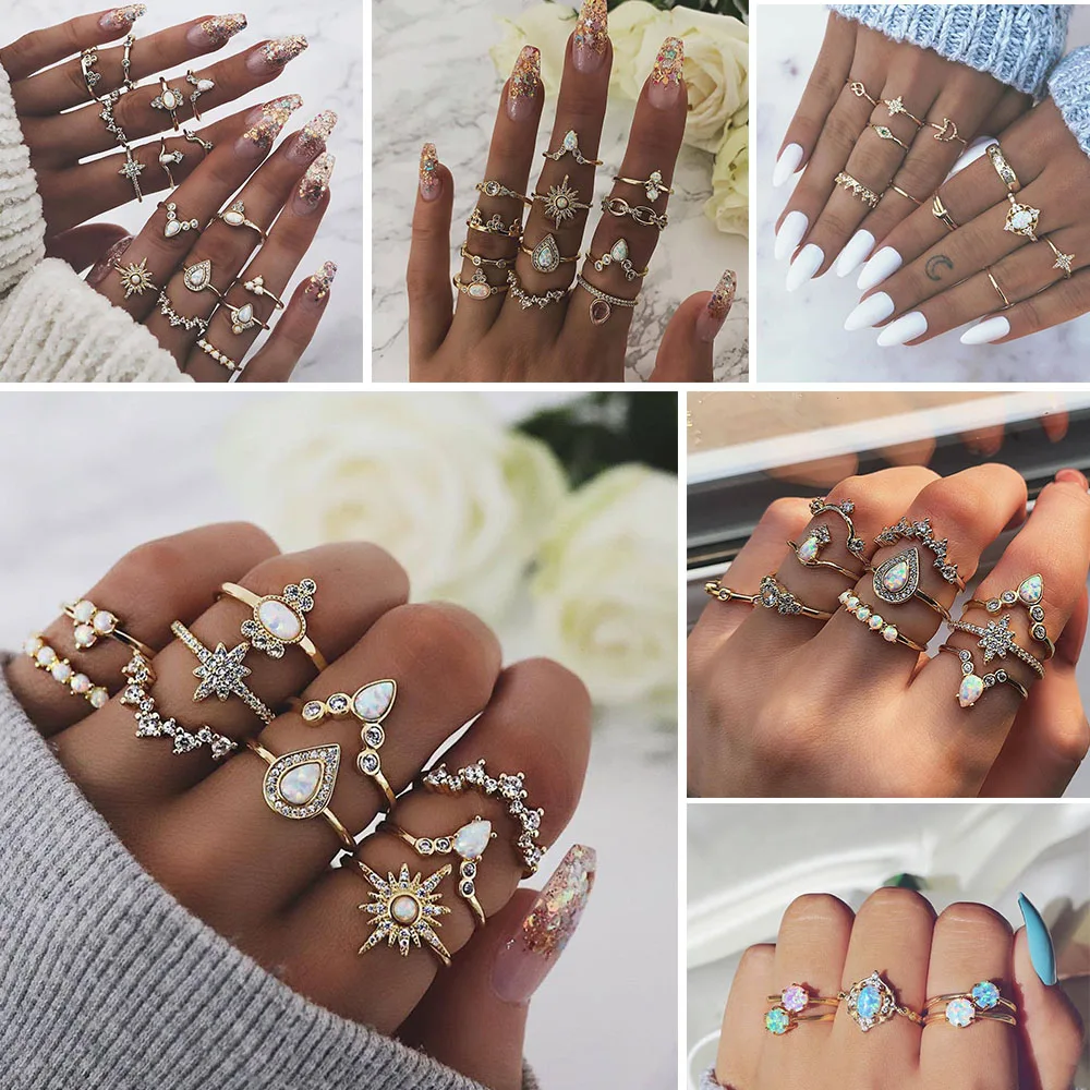 13 шт.компл. женские богемные ретро кольца в виде короны со звездой...