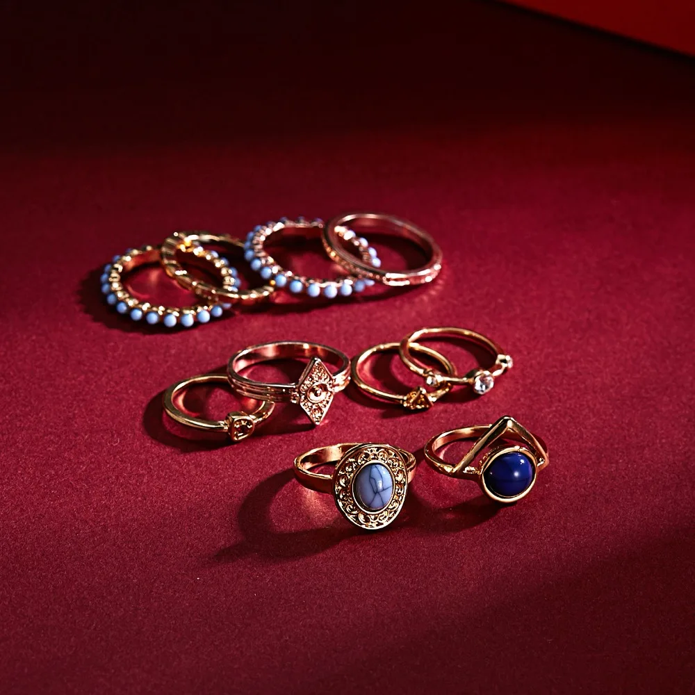 Rinhoo модные поступления кольца набор винтажных женских колец для девочек геометрический молния волны женское кольцо на палец оптовая продажа ювелирных изделий