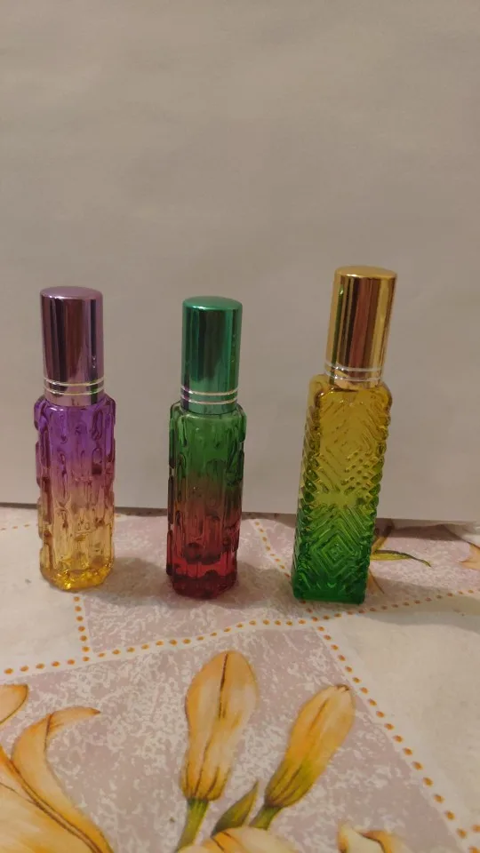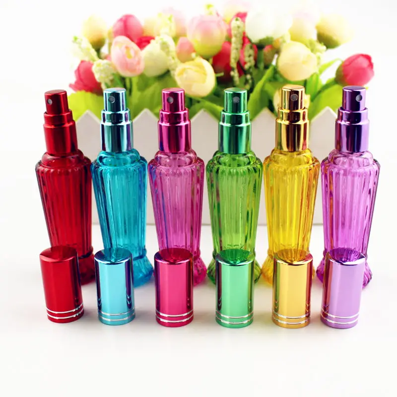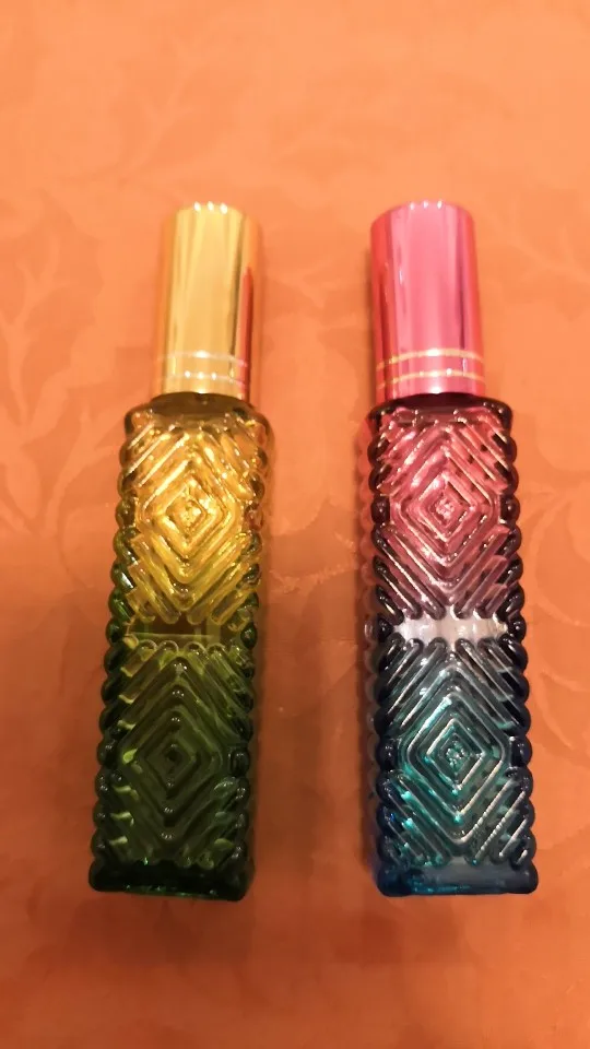 Цветной квадратный стеклянный флакон для духов, 15 мл, толстый мини-флакон с распылителем для косметики, многоразовый стеклянный флакон
